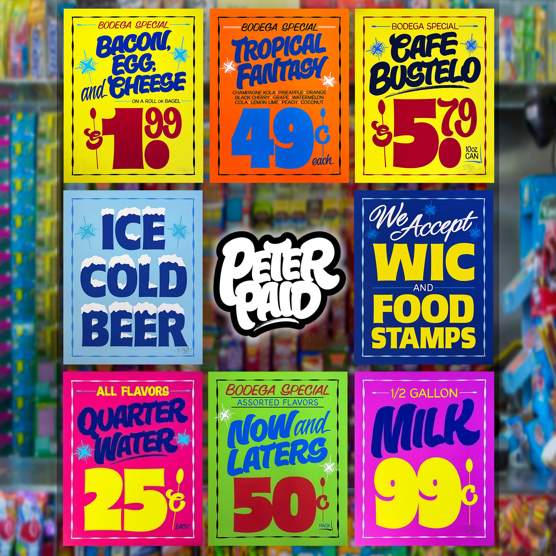 with an authentic Peter Paid bodega paper sign print.