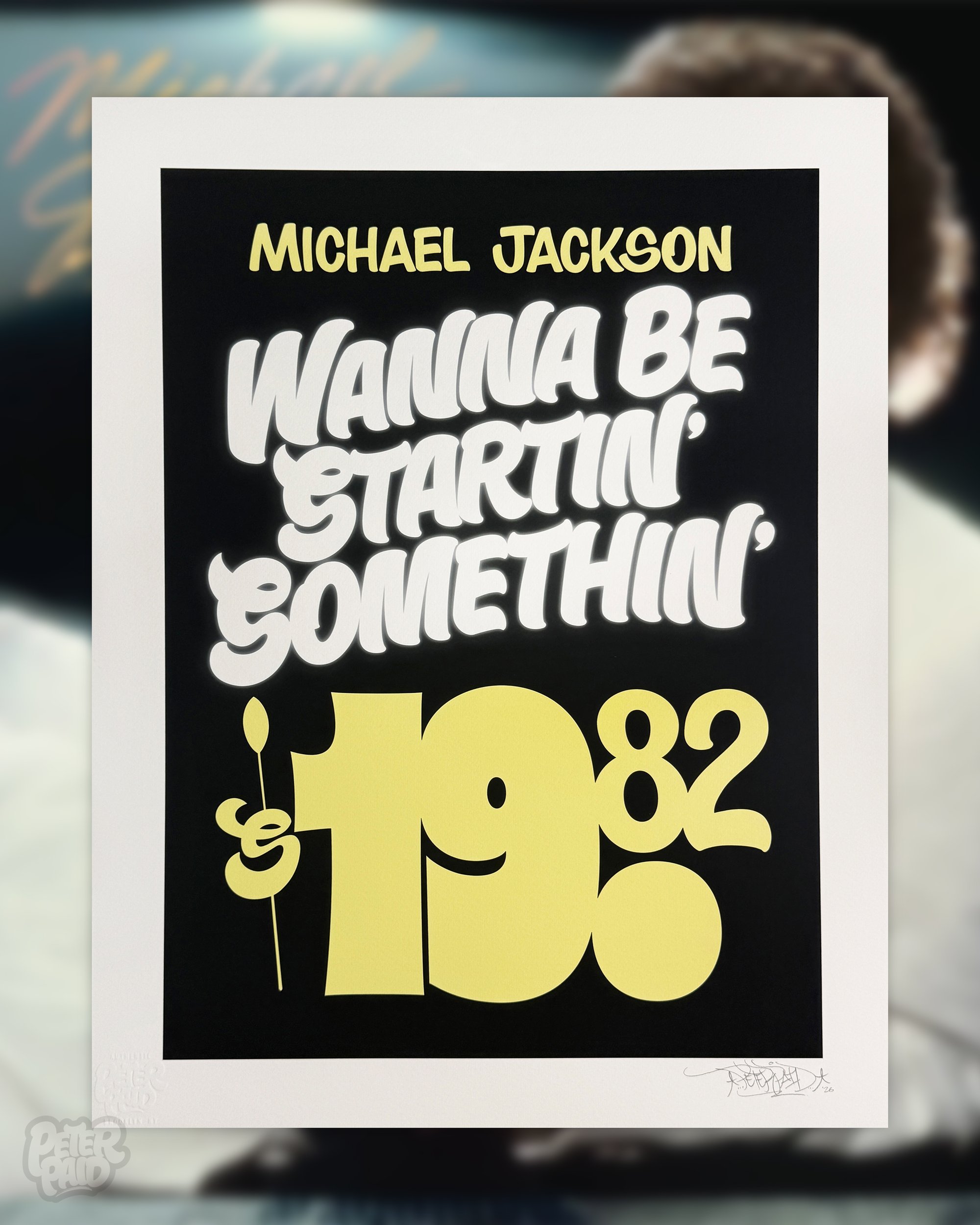 Using the refined palette and iconic aesthetic from the 1982 release of landmark album Thriller, this archival art print was inspired by the energy of the hit song Wanna Be Startin' Somethin'.